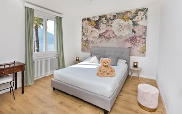 Camera luminosa con vista lago, di circa 20 m2, bagno privato in camera con asciugamani, può ospitare fino a 3 persone. Possibilità di aggiungere un lettino bebè su richiesta. I cani sono i benvenuti a soggiornare in questa camera.