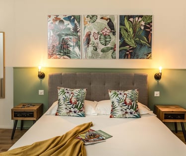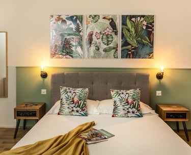 Camere luminose e arredate con gusto floreale, perfette per una vacanza in famiglia. Il giardino è un vero angolo di pace.