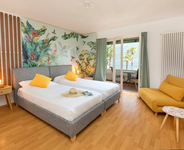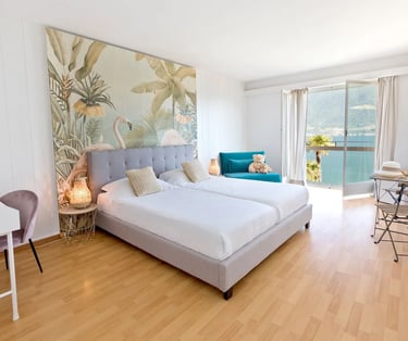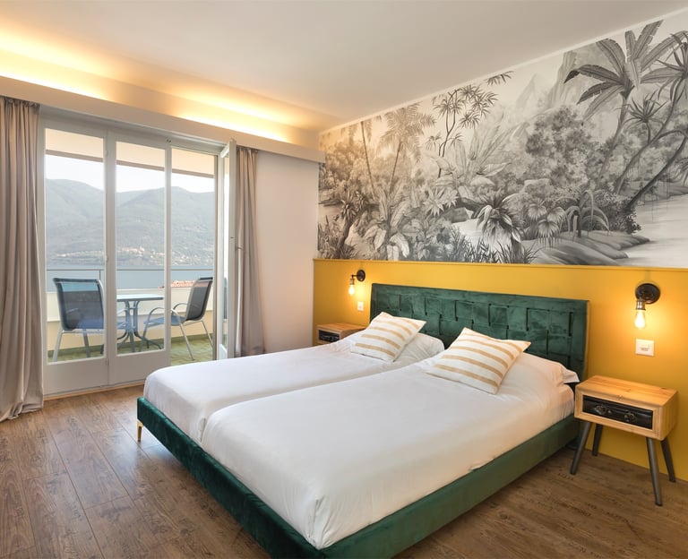 Camera Panorama con balcone e vista lago