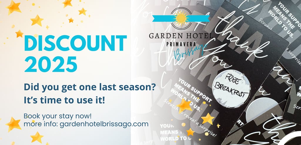 Se sei in possesso di un Thank You Ticket, il Garden Hotel Primavera ti dà il benvenuto con vantaggi esclusivi per il tuo soggiorno nel 2026!